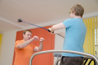 Im Rahmen der stochastischen Resonanz-Therapie wird auch mit Medizinbällen (1 - 5 Kg) trainiert. Fangen und Werfen bewirkt einen Kraftaufbau in der unteren Rumpfmuskulatur.